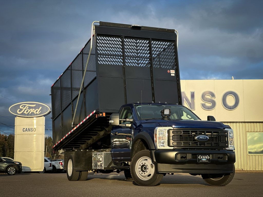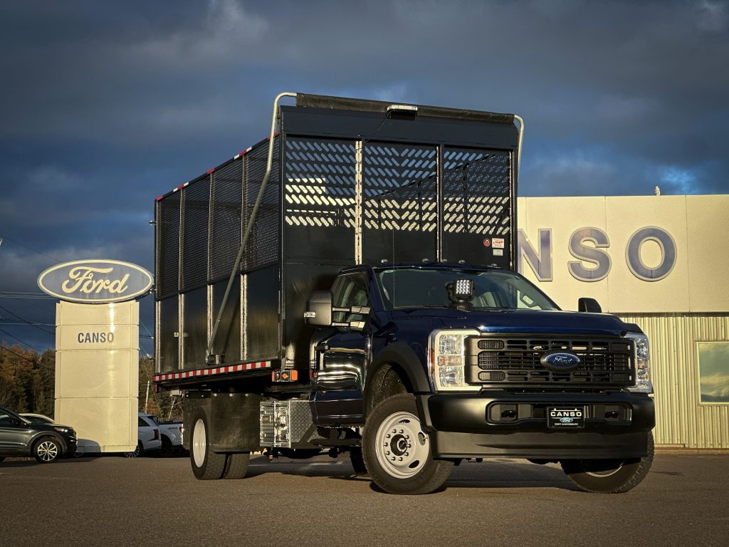 Purchased for local municipal use, Canso Ford configured the upfit for this F-550 with a Multi Lift to give the customer five trucks in on package. It was delivered as specified to Canso Ford with a garbage collection bin, but can also be used to carry standard 20-foot containers, open dumpsters for demolition work, a side-loadable flat deck, a dump body, and many other options. This was the perfect solution for our customer as they needed a truck for doing garbage collection one day per week, but also wanted to put the truck to use in other ways during the remainder of each week.