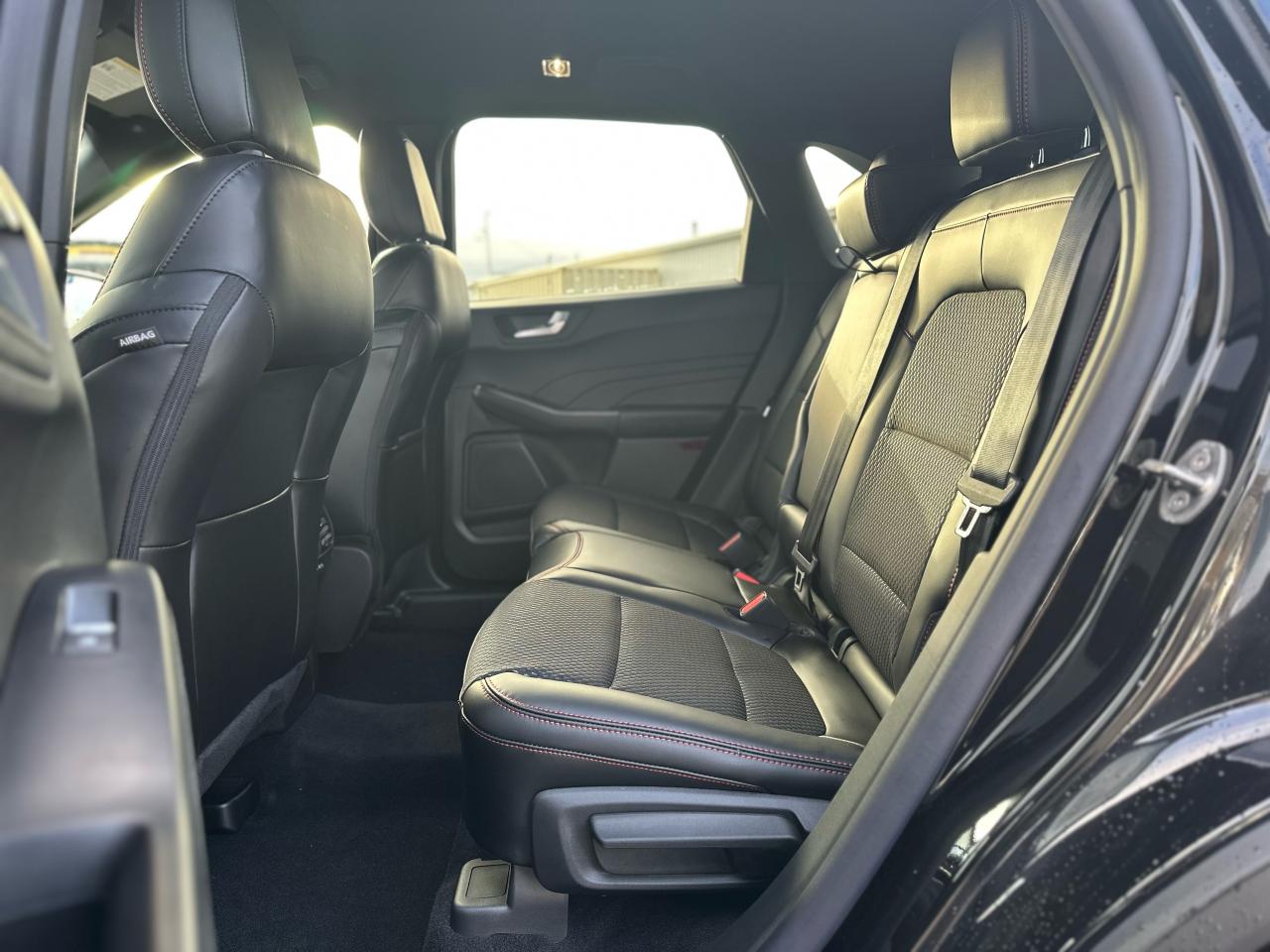 - Partial Vinyl and Cloth Seats with Red Stitching